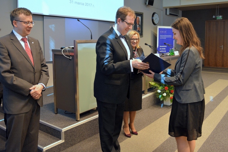 Szef Służby Cywilnej Dobrosław Dowiat-Urbański docenił, że absolwenci wybrali drogę służby publicznej. "Dzięki swojemu starannemu wykształceniu, szerokiej wiedzy i doskonałej znajomości języków obcych zapewne bez większych trudności zdobylibyście atrakcyjną, znakomicie płatną pracę w najlepszych firmach sektora prywatnego. Za ten prospołeczny wybór ścieżki kariery zawodowej należy Wam się najwyższy szacunek i uznanie." - dodał.