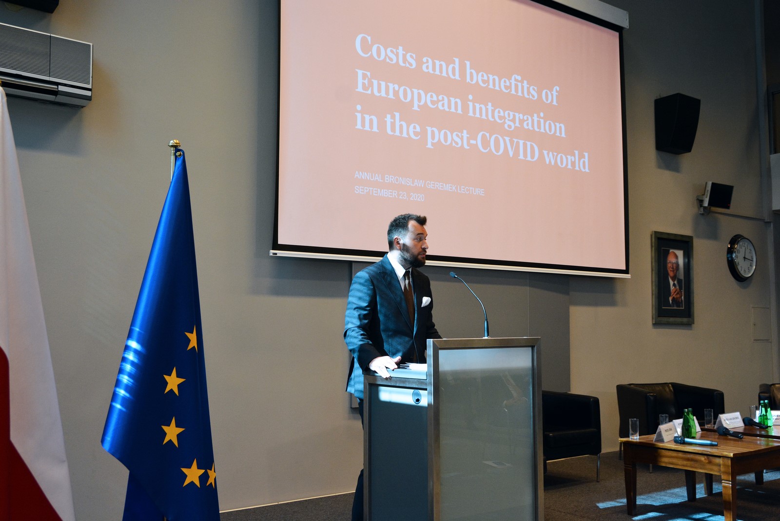 W tym roku, wykład prof. Bronisława Geremka poświęcony był ekonomicznemu wymiarowi integracji europejskiej. Wygłosił go Piotr Arak, Dyrektor Polskiego Instytutu Ekonomicznego, odnosząc się w szczególności do zjawiska pandemii Covid-19 i jej wpływu na rozbieżne interesy państw narodowych, zwłaszcza w kontekście przyjętego po żywiołowych negocjacjach między europejskimi liderami pakietu ratunkowego dla Europy i budżetu na kolejne 7 lat.
