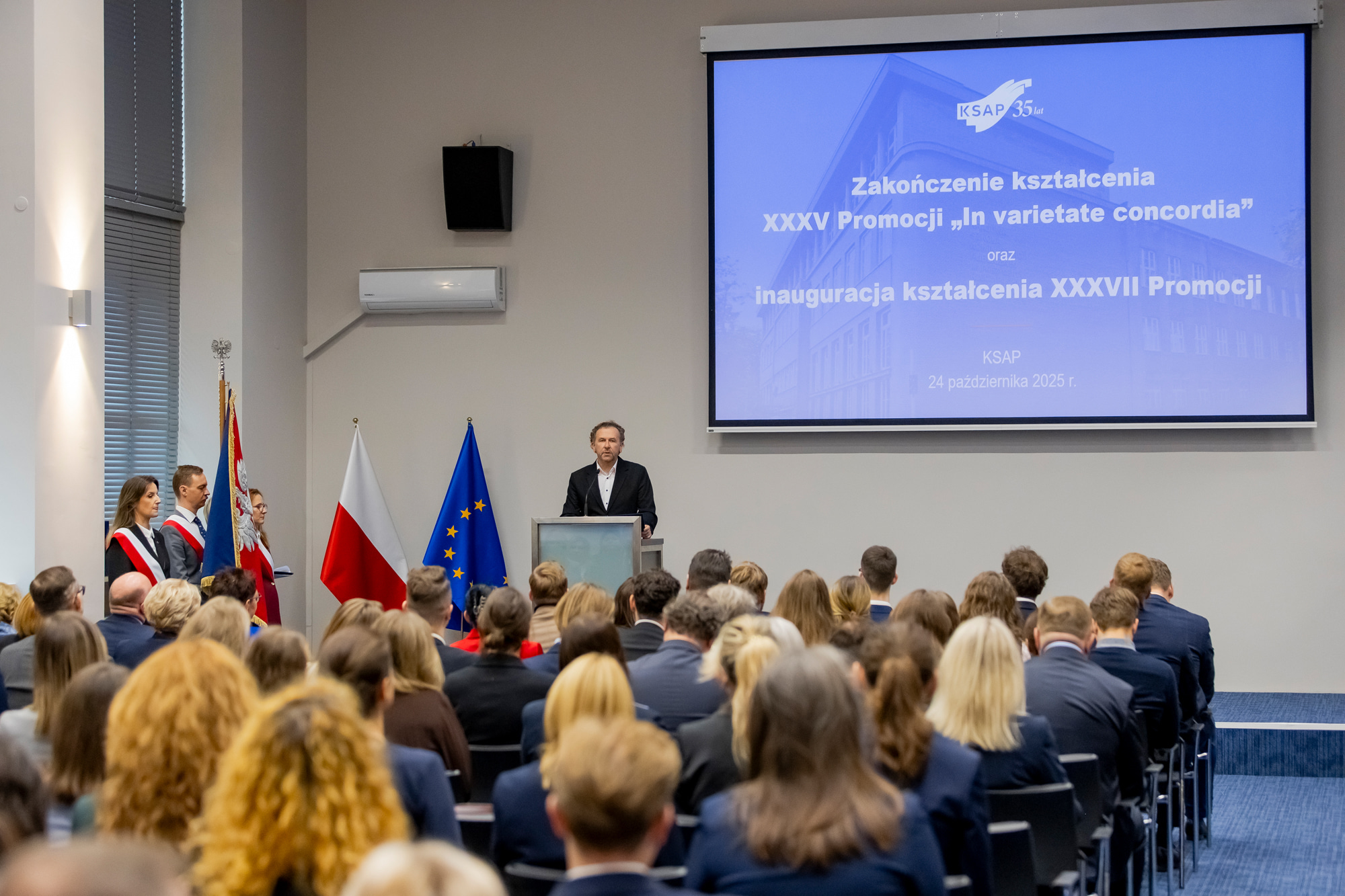 24 października 2025 r. w Krajowej Szkole Administracji Publicznej odbyła się uroczystość zakończenia kształcenia XXXV Promocji In varietate concordia oraz inauguracja XXXVII Promocji słuchaczy kształcenia stacjonarnego. To historyczny moment dla KSAP – pierwsza edycja programu dualnego została uroczyście zakończona, a po dwuletniej przerwie powraca kształcenie stacjonarne.