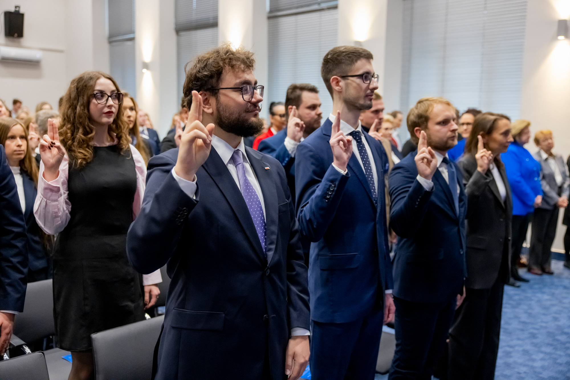Słuchaczki i słuchacze XXXVII Promocji złożyli uroczyste ślubowanie, zobowiązując się do sumiennego i rzetelnego wypełniania obowiązków słuchacza oraz do postępowania zgodnego z zasadami etyki i poszanowania prawa.