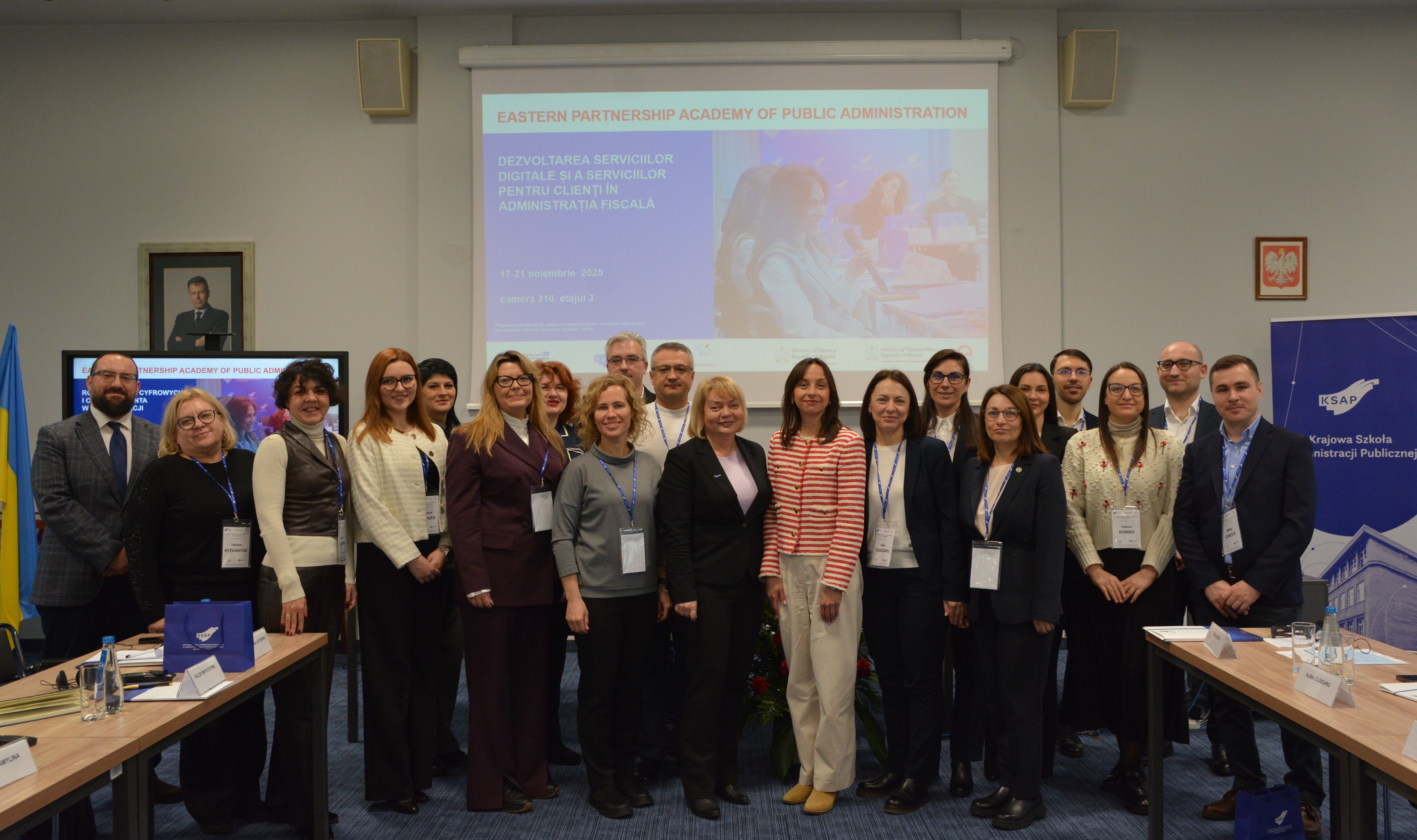 W dniach od 17 do 21 listopada 2025 r., w ramach XV edycji Akademii Administracji Publicznej Partnerstwa Wschodniego, KSAP gościła uczestników szkolenia pt.: „Rozwój usług cyfrowych i obsługi klienta w administracji skarbowej”.